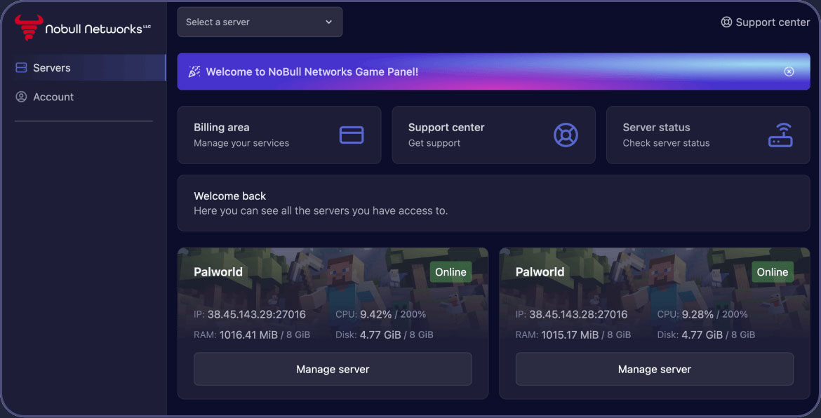 Our customized game panel is intuitive allowing you to manage files, track events, and logs in real time through the web interface.