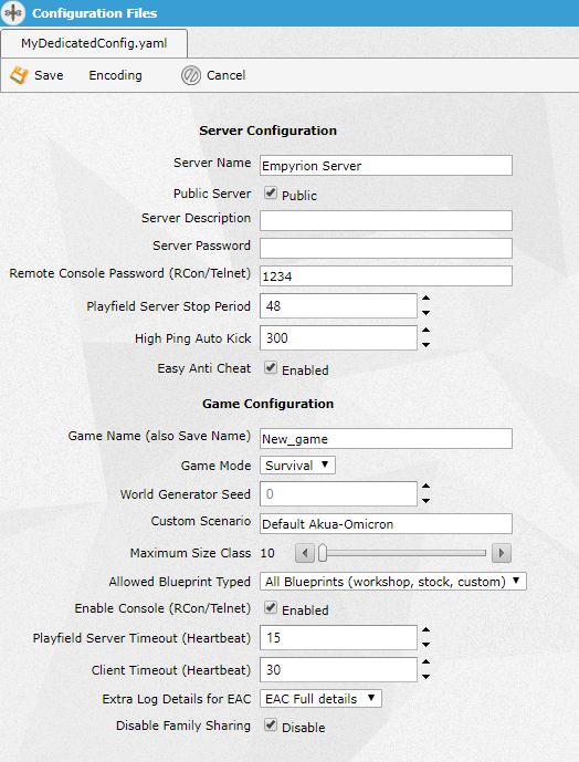 For the majority of our game servers and all our popular ones, we offer an easy to use configuration editor where you can edit the configuration of your server through simple drop downs, tick boxes and text fields. When there are also settings that can be added that are not included in the configuration editor, we also offer direct access to the file where you can edit any setting you require to the file directly.